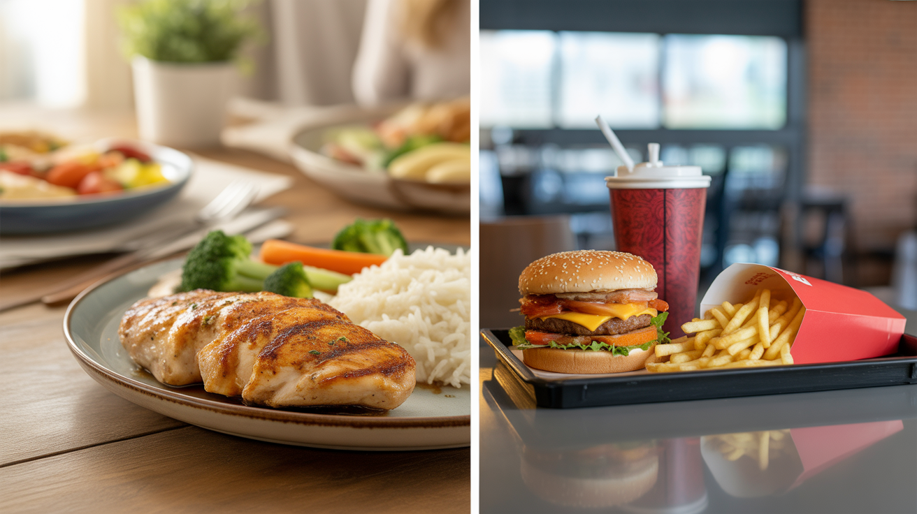 Fast food bridges hunger quickly but still costs $7–$12 per meal.